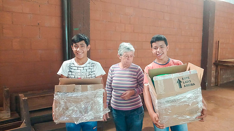Gracias a la colaboración de la Comunidad Educativa del Colegio del Carmen y a Transportes Moretta, en el marco de nuestra Misión, llegaron para Pascuas del 2023 a Puerto Libertad, Misiones las cajas navideñas del año pasado. Fueron recibidas por los sacerdotes Florencio y Silvano y distribuidas a las familias miembros de su parroquia.