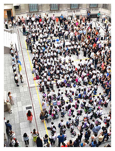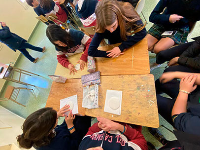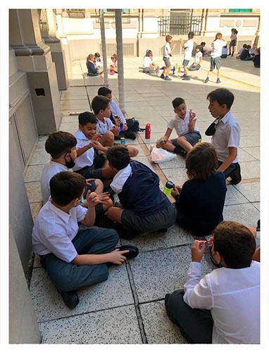 Alumnos 7mo B realizando una actividad con los alumnos de Primer Año, enmarcada en el Proyecto de Articulación Nivel Primario Nivel Secundario.