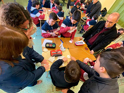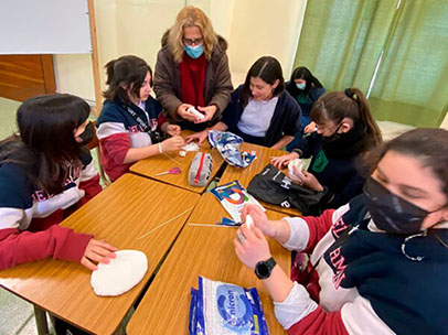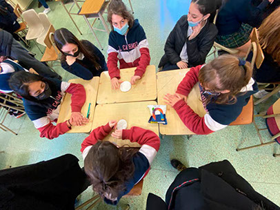 Proyecto de Articulación Nivel Primario Nivel Secundario, Alumnos 7mo A realizando actividad con los alumnos de Primer Año.